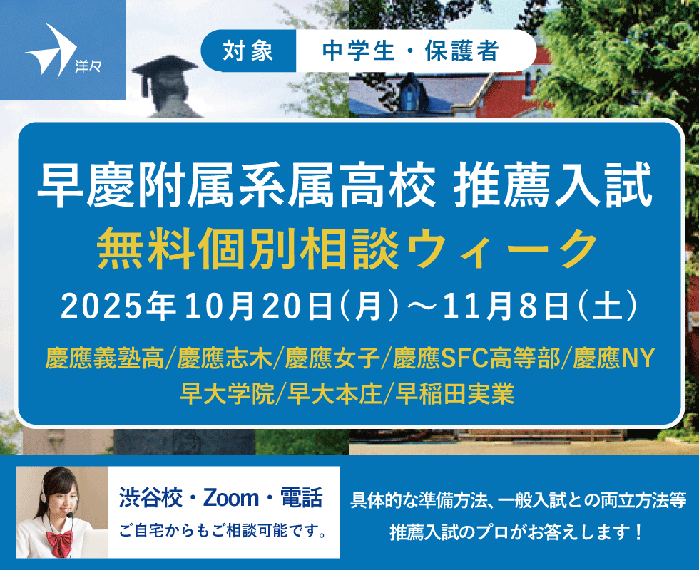 「プロが答える!早慶附属系属高校 高校推薦入試 無料個別相談ウィーク」