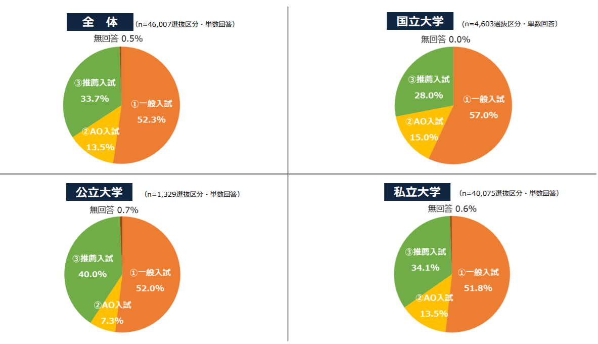 一般入試52.3%、総合型選抜13.5%、学校推薦型選抜33.7%