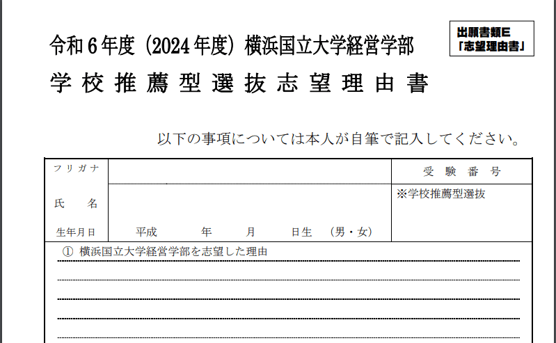 横浜国立大学学校推薦型選抜の主な出願書類は以下になります。