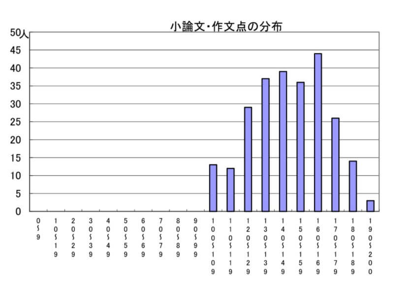 ※小論文試験も面接試験と同様に配点が変更(800点満点中、小論文試験は200点満点⇒900点満中、小論文試験は300点)されているため、参考値として捉えてください。